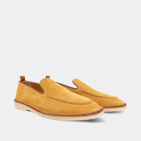 高品質のスエード素材で作られており、アッパーの手縫いのディテールが際立ち、職人の技が光り、経年変化による耐久性が向上します。軽量のラバーソールとレザーミッドソールが柔軟性と快適性を確保しながら、時代を超えた美しさを保ち、多用途でカジュアルなスタイルに最適です。