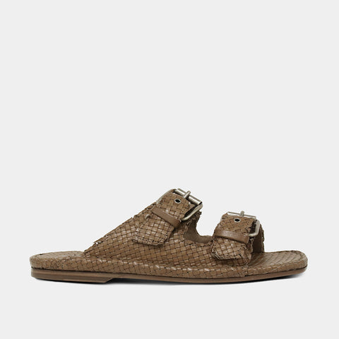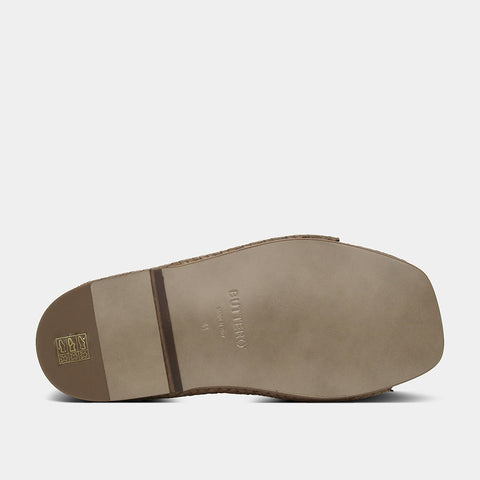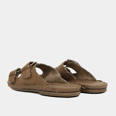 手作業により編み込まれた革は、無加工なエッジを残すことで本来あるべき革の表情を生かしています。このラフな仕上がりが、サンダルに独特の個性と風合いを加え、芸術作品としての存在感を放っています。